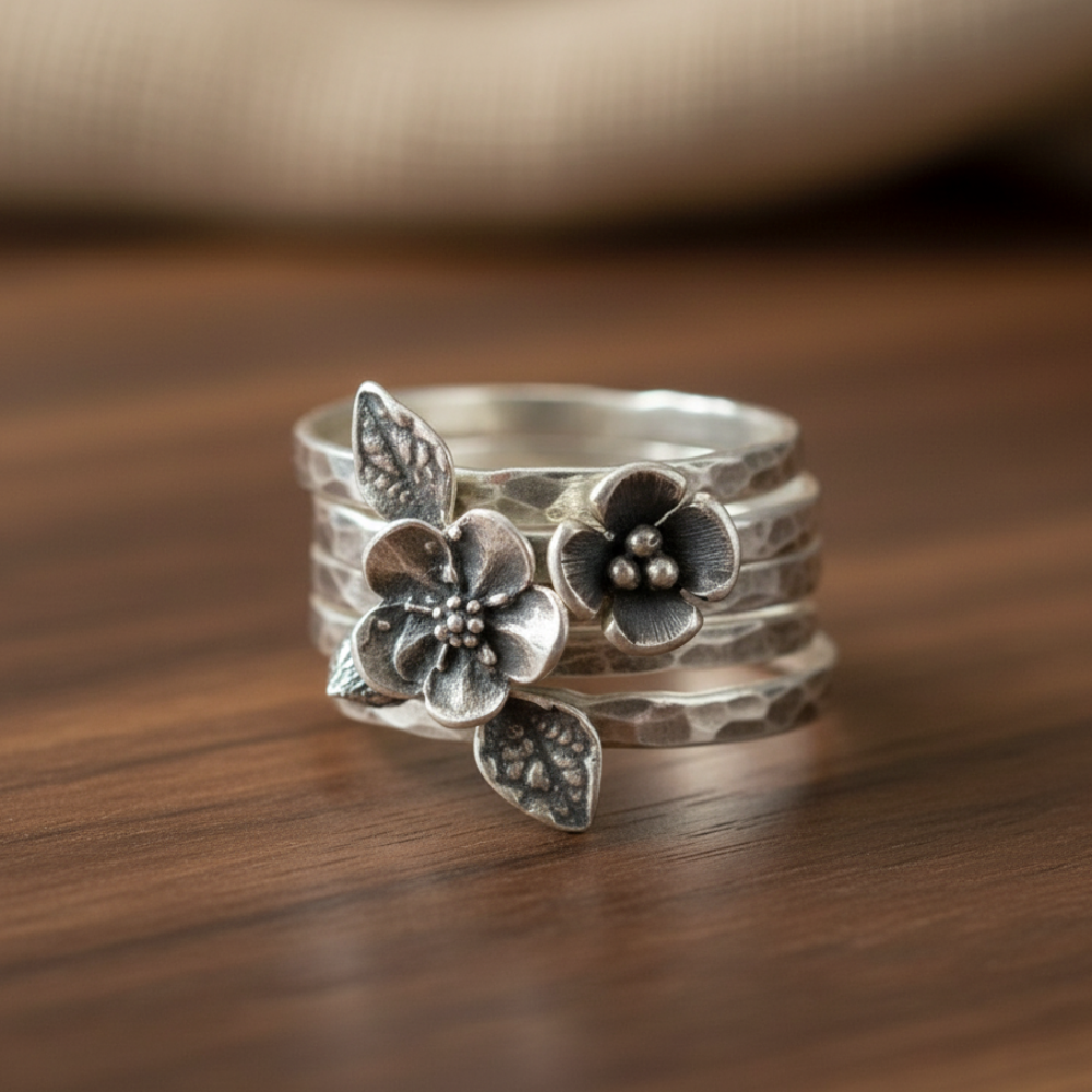 Vintage Flower Silver Layer Ring