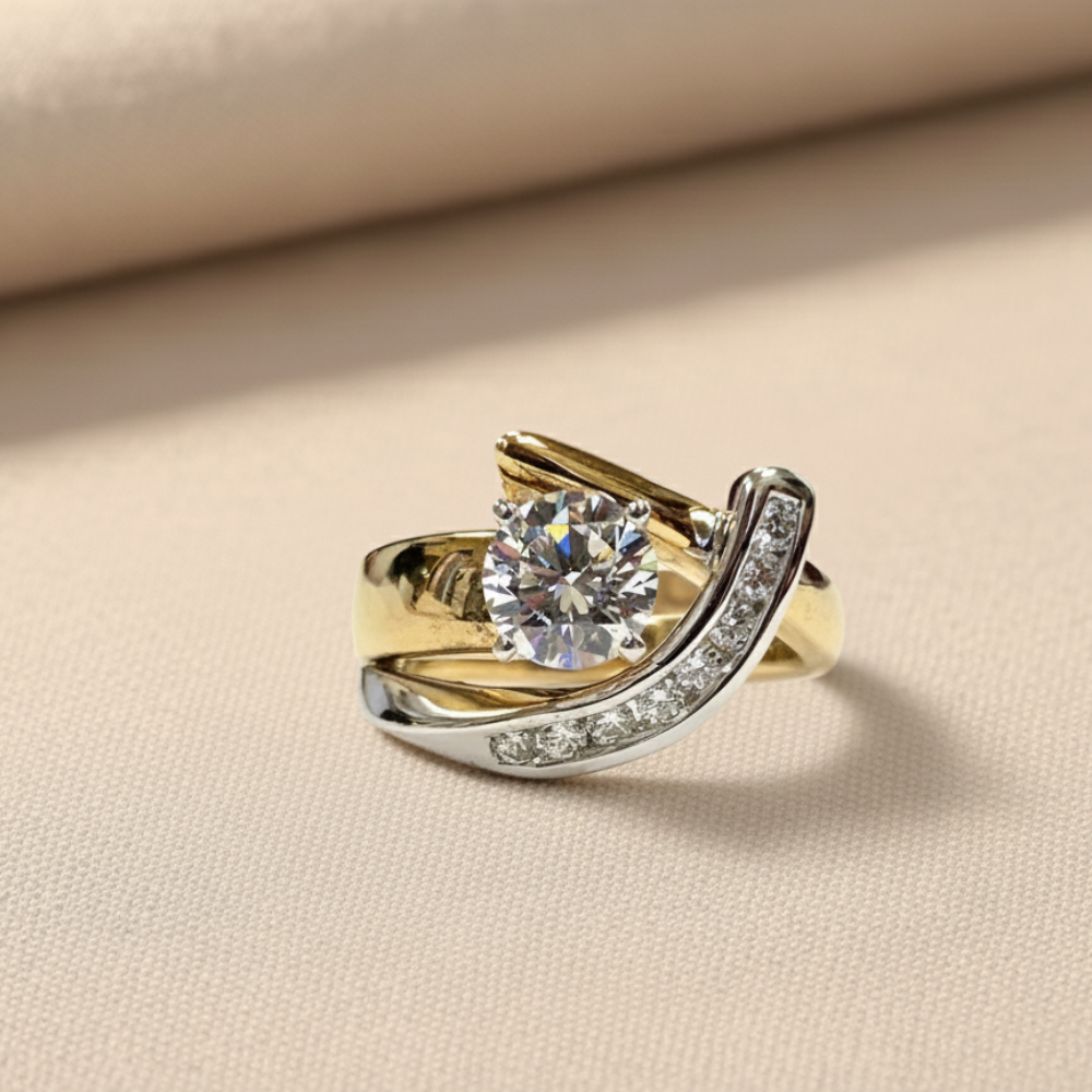 "This ring was my way of weaving opposites together — the warmth of gold with the cool strength of silver. I gave it a graceful twist, then crowned it with a brilliant stone, to remind us how contrast can create beauty. Bold, yet timeless, it’s a piece I hope will stand out in your life as much as it has in mine while I crafted it."